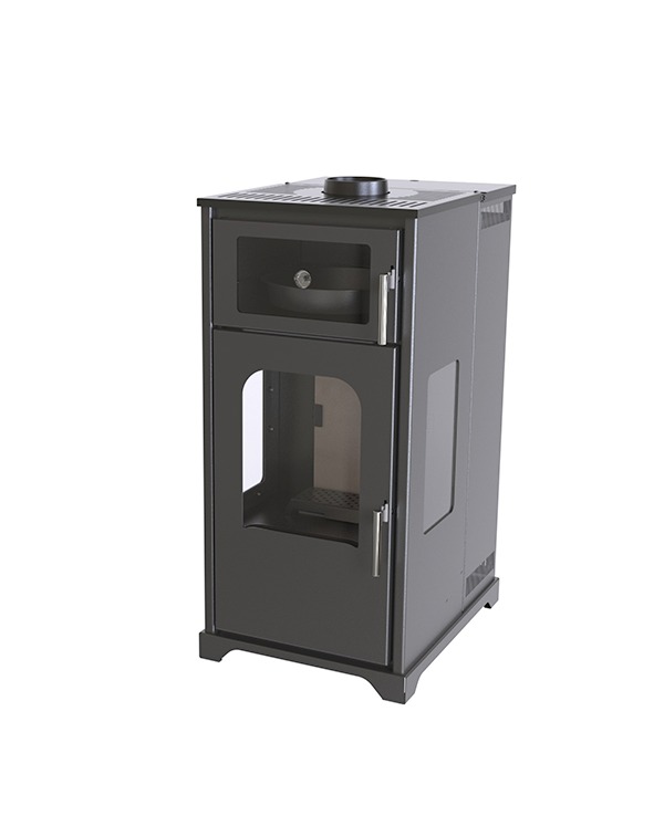Pelet ve odun ile çalışabilen yapısı, yakıt tercihinde esneklik sağlarken, üst bölümde yer alan fırını sayesinde ek enerji harcamadan yemek pişirme imkânı sunar. 12 kW gücü ile 300 m³’e kadar alanlarda etkili ısınma sağlar.